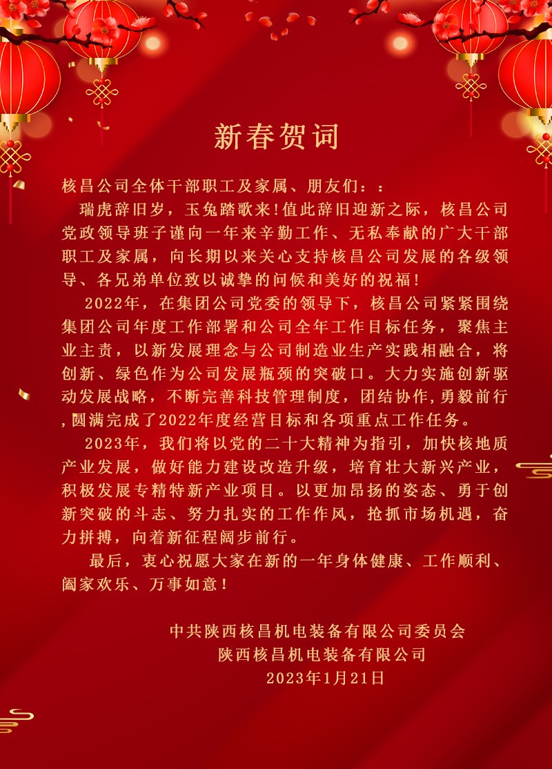 1月28日,核昌公司三屆三次職工(會(huì)員)代表大會(huì)暨2023年工作會(huì)議盛大召開(kāi)。公司領(lǐng)導(dǎo)班子、職工代表、列席代表共計(jì)60人參加本次會(huì)議。會(huì)上,總經(jīng)理李偉傳達(dá)了集團(tuán)公司2023年工作會(huì)議...