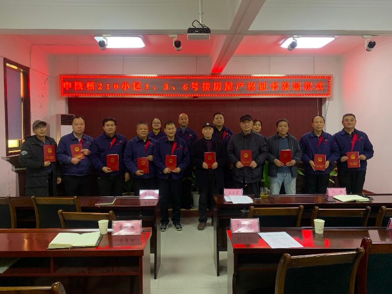 小小的產(chǎn)權(quán)證,事關(guān)群眾的大民生。由于歷史原因,二一〇小區(qū)1、3、6號(hào)樓業(yè)主的房產(chǎn)證十多年沒(méi)能辦下來(lái)。“群眾冷暖掛心上,為民辦事解難題”,核昌公司急群眾所急,組織房產(chǎn)證辦理工作專班,由二一〇物業(yè)公司牽頭,經(jīng)過(guò)3年多的堅(jiān)持和努力,終于解決了這個(gè)十多年未能解決的難題!