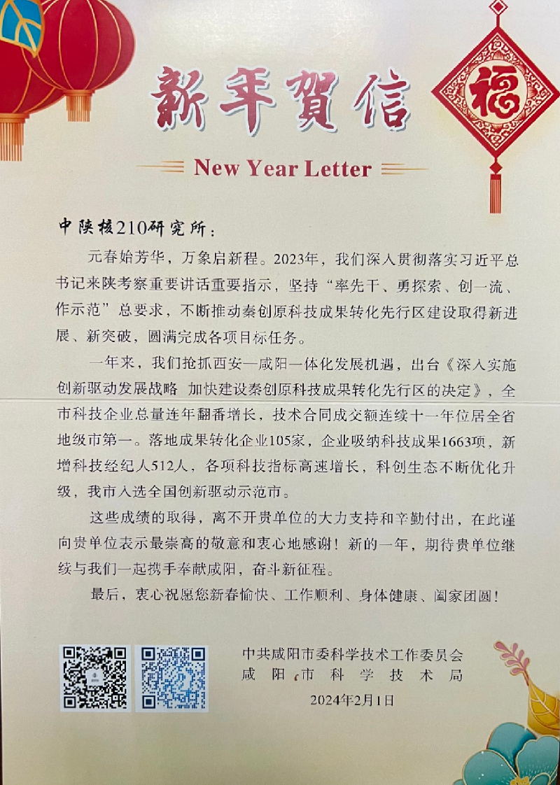 2月2日,在新春佳節(jié)來臨之際,咸陽市科技局局長助理申艷一行來到二一〇研究所開展春節(jié)前慰問活動,為公司職工送去科技局的關(guān)懷與節(jié)日的祝福。公司黨委副書記、總經(jīng)理李偉,黨委委員、副總經(jīng)理、總工程師白寧博及相關(guān)部門負(fù)責(zé)人陪同慰問。